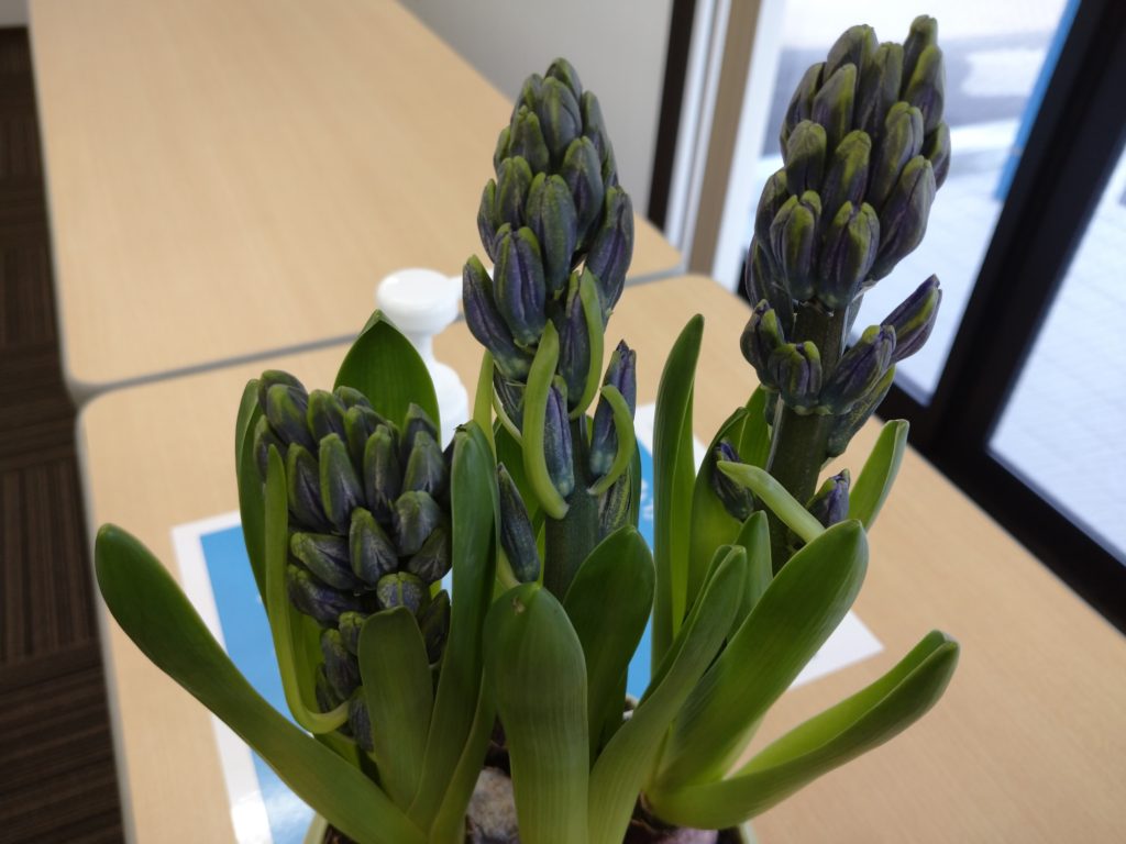 総務の独り言 2021年2月5日 land_master 早春の楽しみ 2月3日は二十四節気の立春 暦の上では春を迎えましたね。 事務所のヒヤシンスも茎が伸び蕾が膨らみ始めています。 いよいよ春の気配が感じられるようになりました。 ヒヤシンスの開花が楽しみです♪